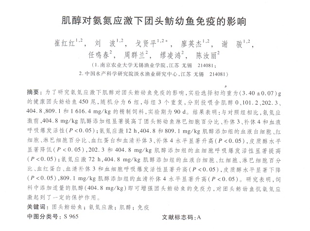 肌醇對氨氮應(yīng)激下團頭魴幼魚免疫的影響