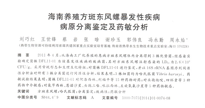 海南養(yǎng)殖方斑東風螺爆發(fā)性疾病病原分離鑒定及藥敏分析