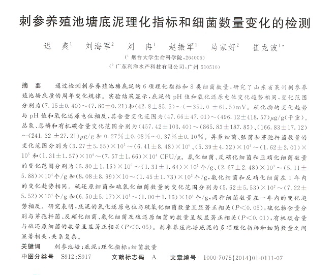 刺參養(yǎng)殖池塘底泥理化指標(biāo)和細(xì)菌數(shù)量變化的檢測(cè)