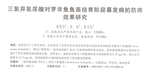 三氯異氰尿酸對羅非魚魚苗培育階段暴發(fā)病的防病效果研究