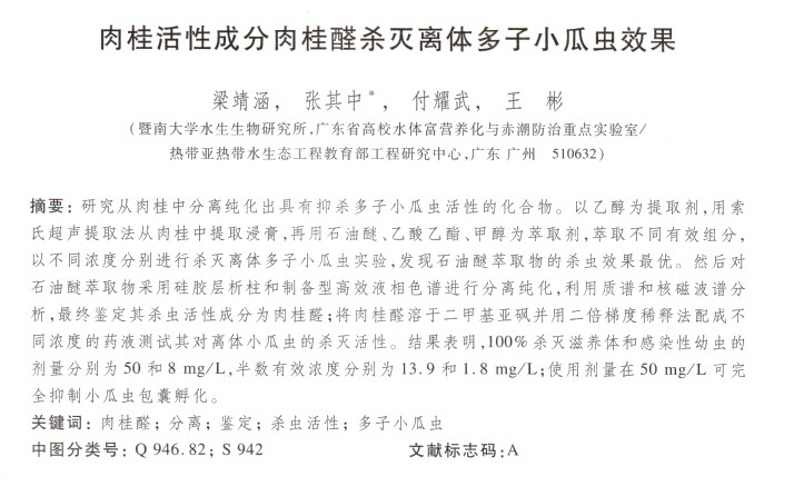 肉桂活性成分肉桂醛殺滅離體多子小瓜蟲效果