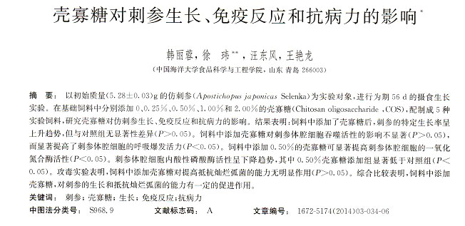 殼寡糖對(duì)刺參生長(zhǎng)、免疫反應(yīng)和抗病力的影響
