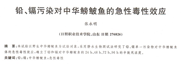 鉛、鎘污染對(duì)中華鳑鲏?mèng)~的急性毒性效應(yīng)