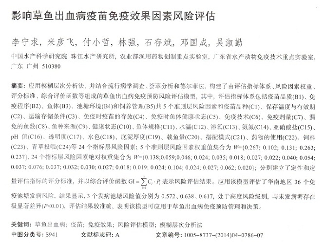 影響草魚出血病疫苗免疫效果因素風(fēng)險(xiǎn)評(píng)估
