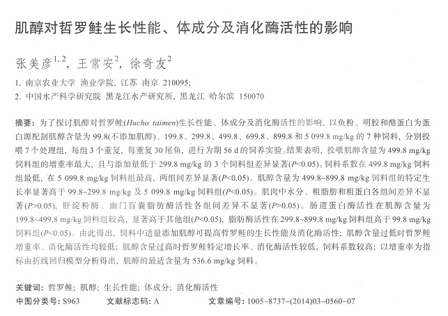 肌醇對哲羅鮭生長性能、體成分及消化酶活性的影響