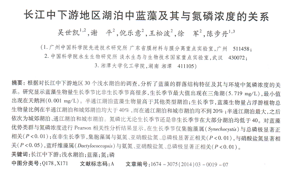 長(zhǎng)江中下游地區(qū)湖泊中藍(lán)藻及其與氮磷濃度的關(guān)系