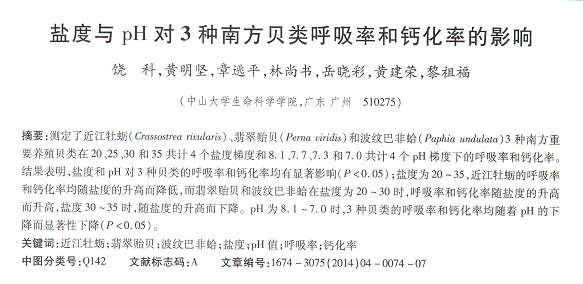 鹽度與pH對3種南方貝類呼吸率和鈣化率的影響