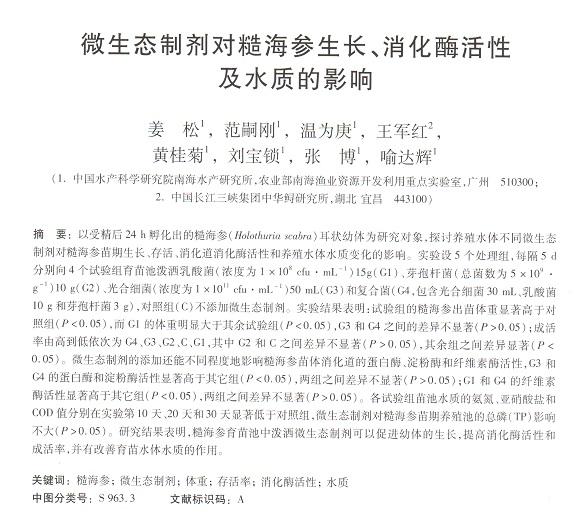 微生態(tài)制劑對糙海參生長、消化酶活性及水質(zhì)的影響