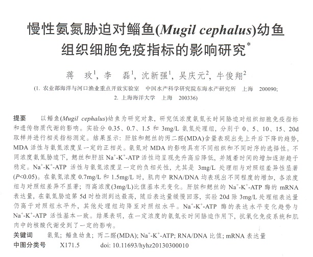 慢性氨氮脅迫對鯔魚(Mugil cephalus)幼魚組織細胞免疫指標的影響研究