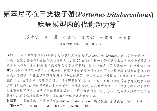 氟苯尼考在三疣梭子蟹(Portunus trituberculatus)疾病模型內(nèi)的代謝動(dòng)力學(xué)