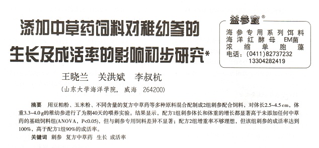 添加中草藥飼料對(duì)稚幼參的生長及成活率的影響初步研究