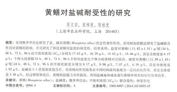 黃鱔對鹽堿耐受性的研究
