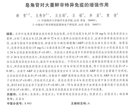 皂角苷對(duì)大菱鲆非特異免疫的增強(qiáng)作用