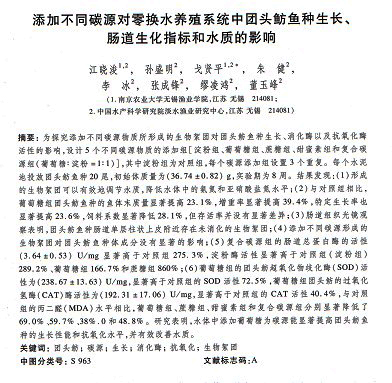 添加不同碳源對(duì)零換水養(yǎng)殖系統(tǒng)中團(tuán)頭魴魚種生長、腸道生化指標(biāo)和水質(zhì)的影響