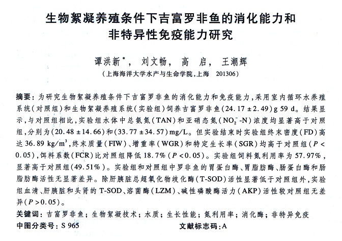 生物絮凝養(yǎng)殖條件下吉富羅非魚的消化能力和非特異性免疫能力研究