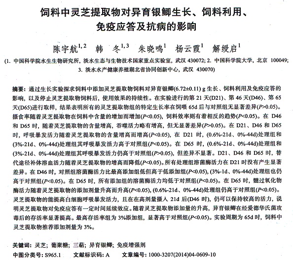 飼料中靈芝提取物對異育銀鯽生長、飼料利用、免疫應(yīng)答及抗病的影響