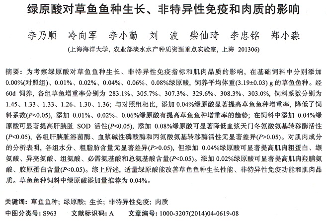 綠原酸對(duì)草魚魚種生長(zhǎng)、非特異性免疫和肉質(zhì)的影響