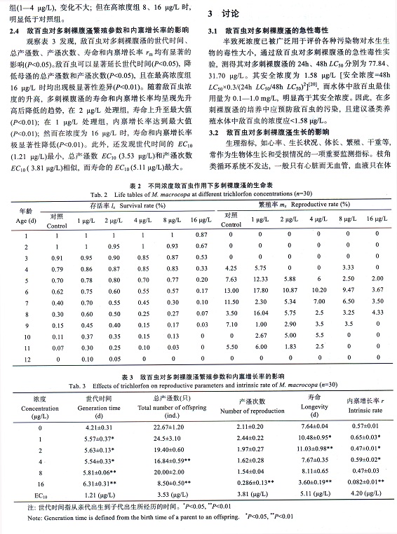 敵百蟲對多刺裸腹溞生長和繁殖能力的影響(5-3)