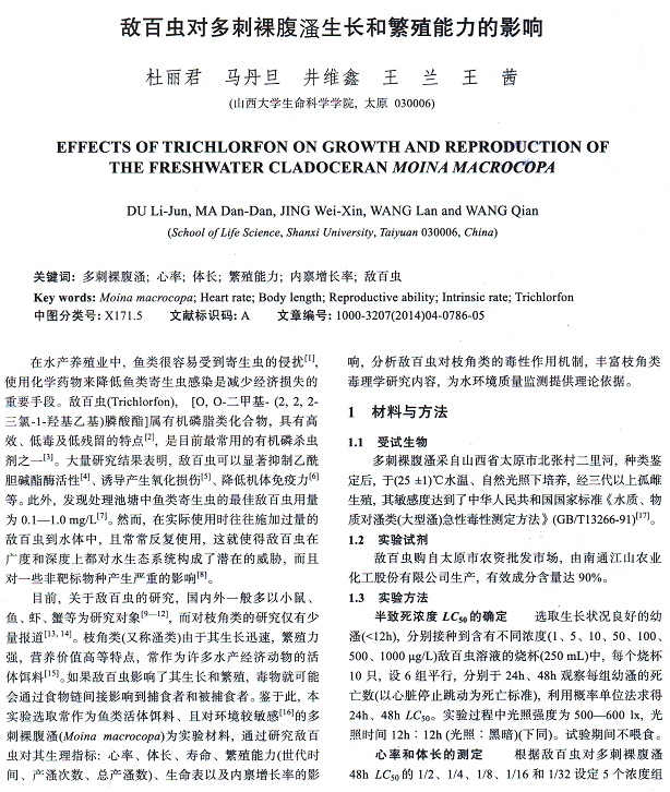 敵百蟲對(duì)多刺裸腹溞生長(zhǎng)和繁殖能力的影響(5-1)