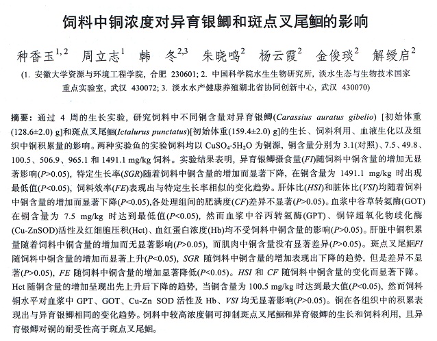 飼料中銅濃度對異育銀鯽和斑點叉尾鮰的影響