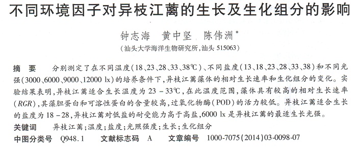 不同環(huán)境因子對(duì)異枝江蘺的生長(zhǎng)及生化組分的影響