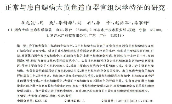 正常與患白鰓病大黃魚造血器官組織學(xué)特征的研究