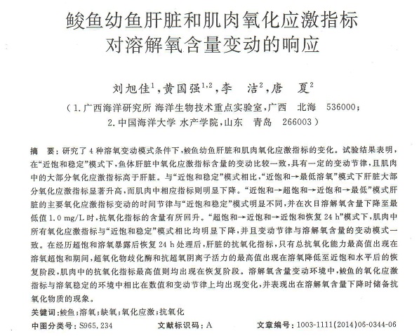 鮻魚幼魚肝臟和肌肉氧化應(yīng)激指標(biāo)對(duì)溶解氧含量變動(dòng)的響應(yīng)