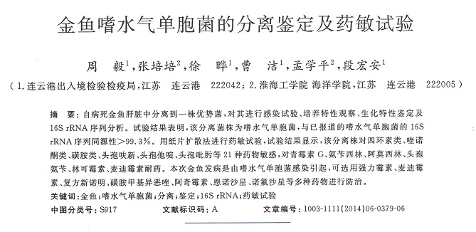 金魚(yú)嗜水氣單胞菌的分離鑒定及藥敏試驗(yàn)