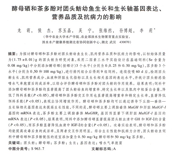 酵母硒和茶多酚對團頭魴幼魚生長和生長軸基因表達、營養(yǎng)品質(zhì)及抗病力的影響