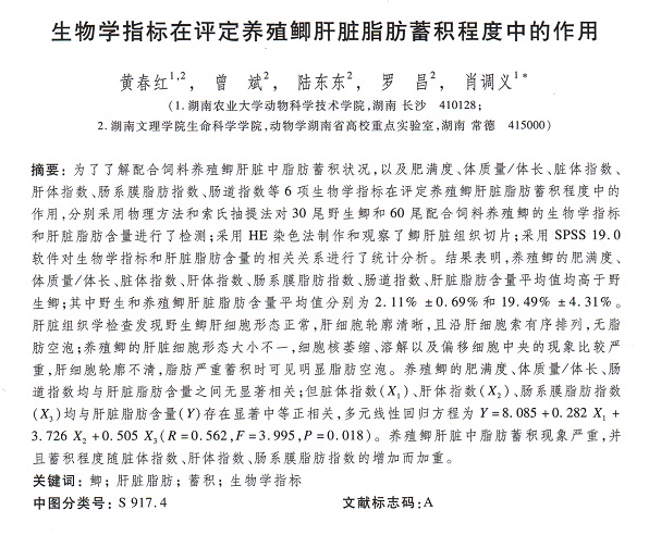 生物學(xué)指標(biāo)在評(píng)定養(yǎng)殖鯽肝臟脂肪蓄積程度中的作用