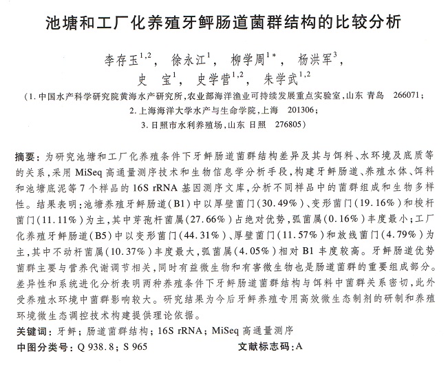 池塘和工廠(chǎng)化養(yǎng)殖牙鲆腸道菌群結(jié)構(gòu)的比較分析