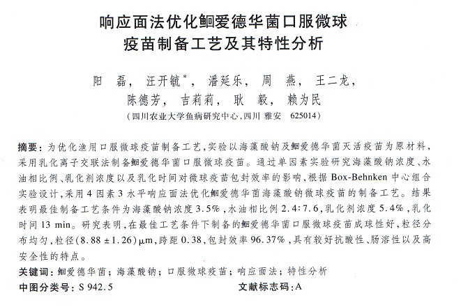 響應面法優(yōu)化鮰愛德華菌口服微球疫苗制備工藝及其特性分析
