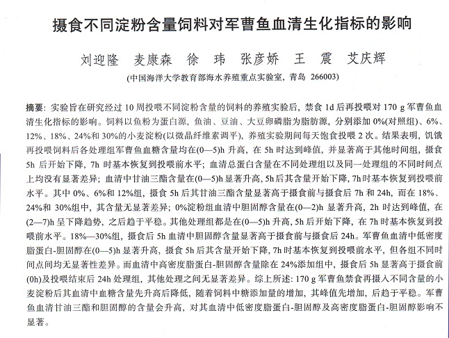攝食不同淀粉含量飼料對(duì)軍曹魚血清生化指標(biāo)的影響