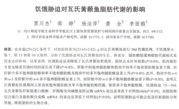 饑餓脅迫對(duì)瓦氏黃顙魚脂肪代謝的影響