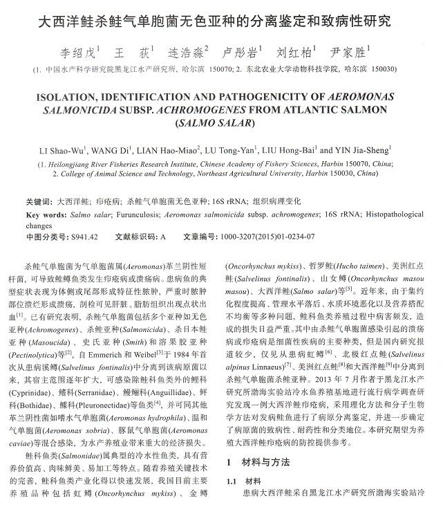 大西洋鮭殺鮭氣單胞菌無色亞種的分離鑒定和致病性研究-1