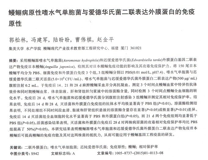 鰻鱺病原性嗜水氣單胞菌與愛德華氏菌二聯(lián)表達外膜蛋白的免疫原性