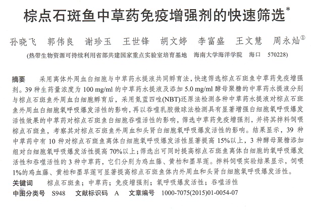 棕點(diǎn)石斑魚(yú)中草藥免疫增強(qiáng)劑的快速篩選