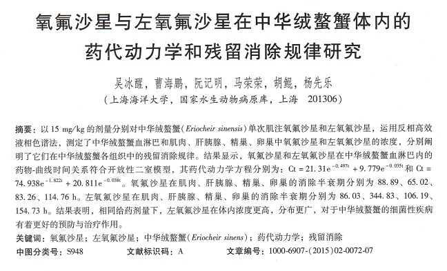 氧氟沙星與左氧氟沙星在中華絨鱉蟹體內(nèi)的藥代動(dòng)力學(xué)和殘留消除規(guī)律研究