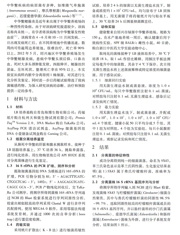 一株多重耐藥中華鱉源弗氏檸檬酸桿菌的分離鑒定(2)