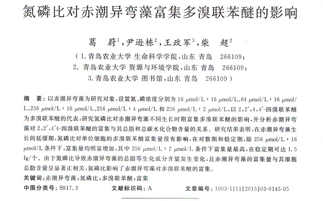氮磷比對(duì)赤潮異彎藻富集多溴聯(lián)苯醚的影響