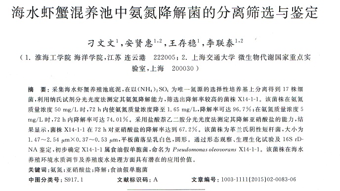 海水蝦蟹混養(yǎng)池中氨氮降解菌的分離篩選與鑒定
