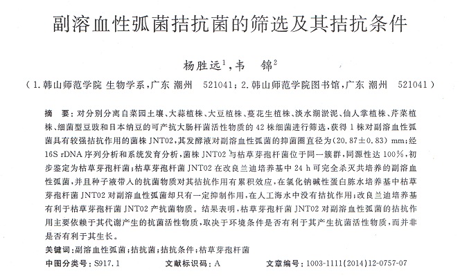 副溶血性弧菌拮抗菌的篩選及其拮抗條件