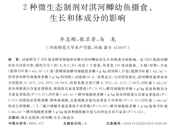 2種微生態(tài)制劑對(duì)淇河鯽幼魚攝食、生長(zhǎng)和體成分的影響