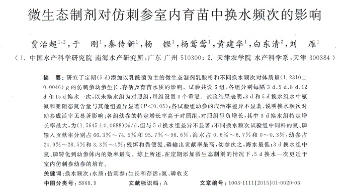 微生態(tài)制劑對仿刺參室內(nèi)育苗中換水頻次的影響