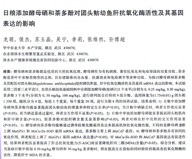 日糧添加酵母硒和茶多酚對團頭魴幼魚肝抗氧化酶活性及其基因表達的影響
