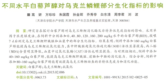 不同水平白藜蘆醇對(duì)烏克蘭鱗鯉部分生化指標(biāo)的影響