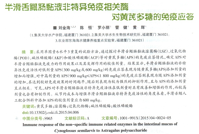 半滑舌鰨腸黏液非特異免疫相關酶對黃芪多糖的免疫答應