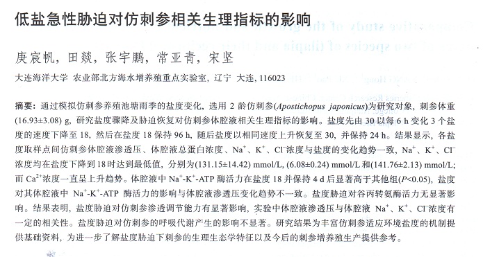 低鹽急性脅迫對仿刺參相關生理指標的影響