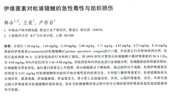 伊維菌素對松浦鏡鯉的急性毒性與組織損傷