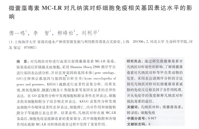 微囊藻毒素MC-LR對(duì)凡納濱對(duì)蝦細(xì)胞免疫相關(guān)基因表達(dá)的影響